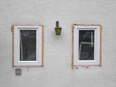 die Fenster nochmal von außen und Nahaufnahme - ZUVIEL Schaum ! - zu KLEIN !!!
